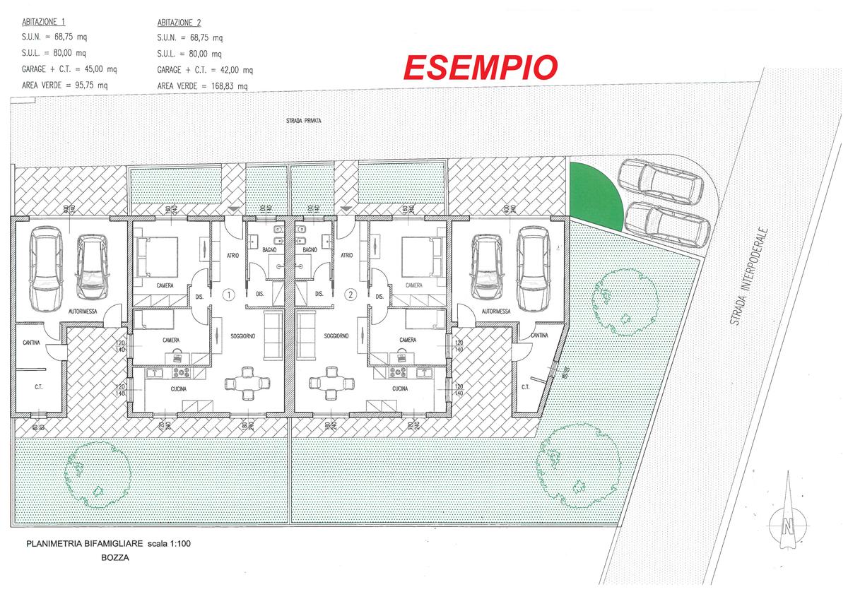 Soluzione ideale per la realizzazione di villa singola moderna, abitazione indipendente su misura o di una bifamiliare (come da esempio in foto).