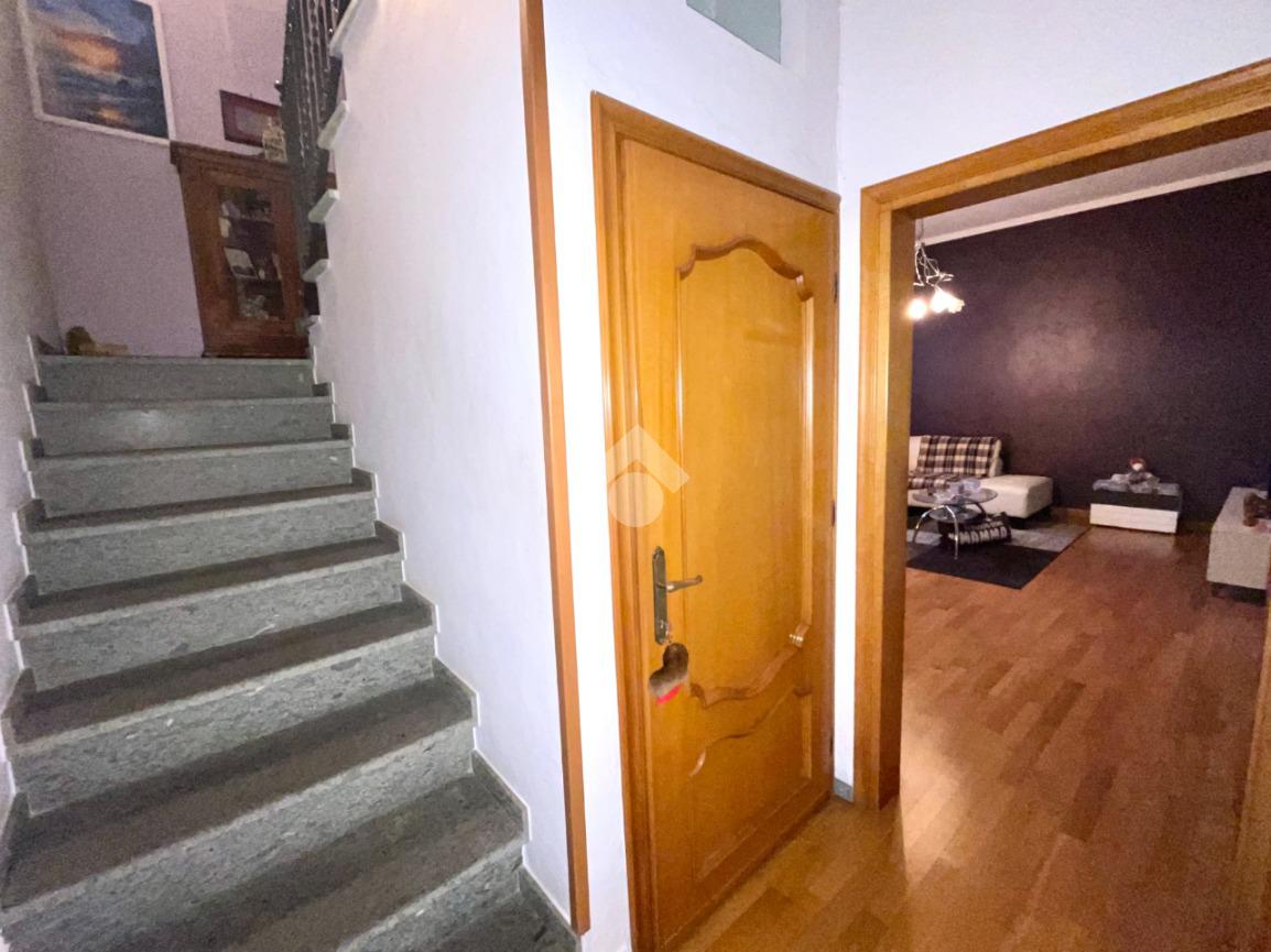 Composta da un portico di entrata, cucina abitabile, soggiorno con parquet e predisposto per una stufa che permette di essere collegata all'impianto termoidraulico, antibagno e bagno con box doccia. La scala interna in sasso peperino ci accompagna alla zona notte con due camere di ampia metratura di cui una con bagno privato. Il sottoscala è un comodo ripostiglio dove è posta la caldaia a condensazione.