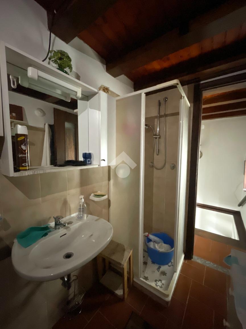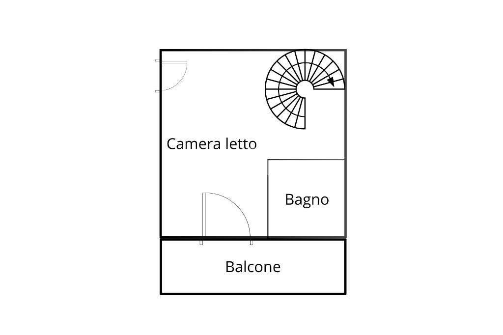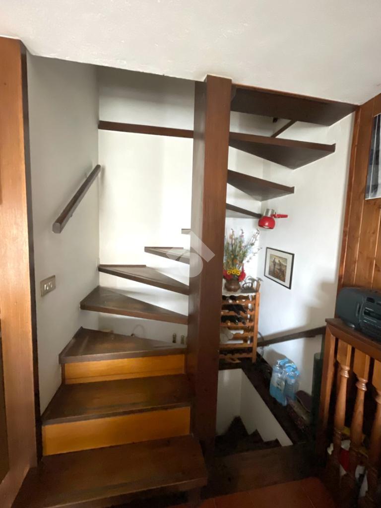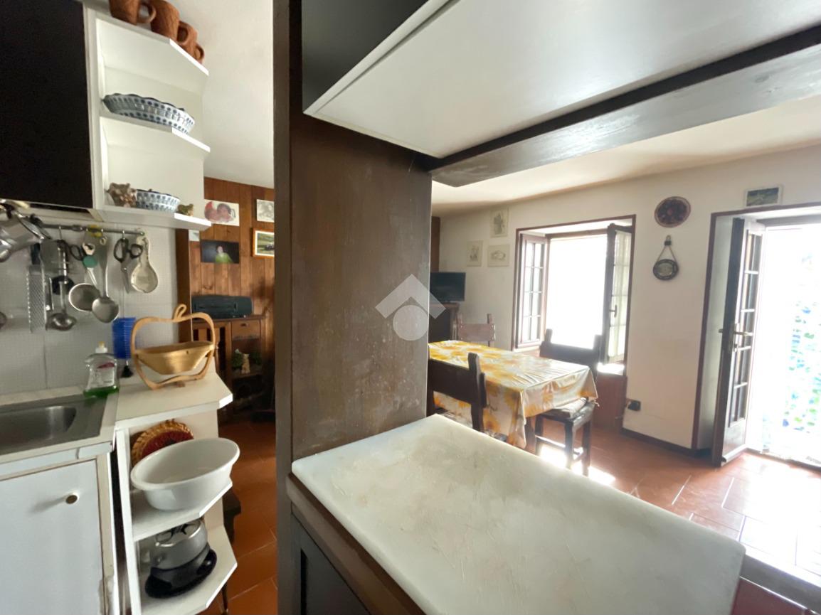 La proprietà è così composta: una prima entrata sul piano terra con camera e bagno attualmente utilizzato anche come zona lavanderia. Al piano primo la cucina è abitabile e gode di una seconda entrata direttamente dal primo balcone della casa. Il secondo e ultimo piano ha una seconda camera letto e un secondo bagno accessoriato di un secondo balcone, ed il vano ha un'uscita/entrata sul retro dell’abitazione, sempre all’interno dei caratteristici vicoli del borgo.