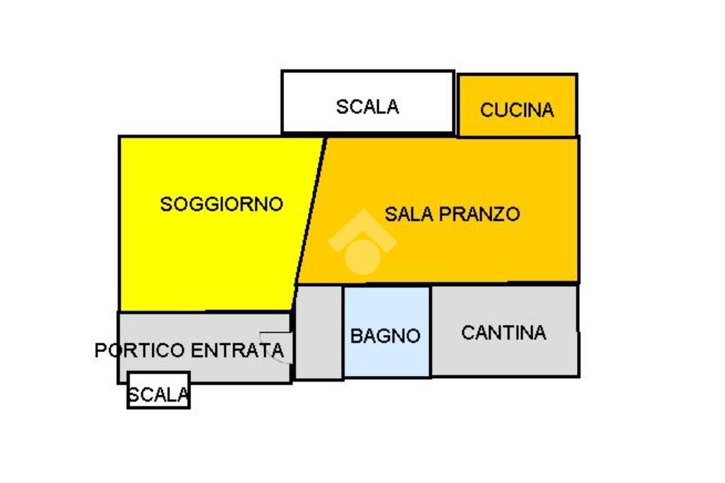 L'abitazione principale ha un accesso da un piccolo sfogo di proprietà, un disimpegno ci dirige in bagno con vasca e finestra e nella zona giorno composta da sala pranzo e angolo cottura e un soggiorno accessoriato di camino a legna. Una cantina comunicante con la zona giorno rifinisce il piano terra.