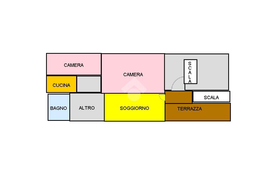 E' composta da un primo alloggio al piano terra, con entrata da un porticato e un ingresso ci accompagna in un bagno, cucina e due camere letto.