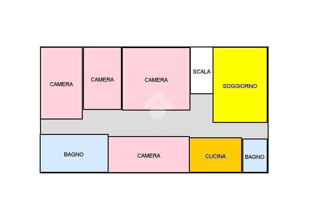 Edificato negli anni '90, ha ancora un buono stato di manutenzione nonchè di finitura, con un primo bagno con box doccia, una cucina, quattro camere letto e un secondo bagno con box doccia e vasca a conchiglia con idromassaggio. La produzione dell'acqua calda per questo alloggio è con boiler a gas istantaneo, mentre pur se l'impianto termico è presente, non è provvisto nè di caloriferi e nè di caldaia.
